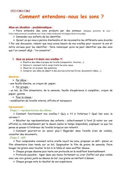 Page 1 du PDF comment entendons-nous le son ?